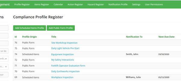Build your own Notification profiles for Actions, Audits, Inspections, Events/Incident Types, level of Risk, Training & Licence renewals and much more.